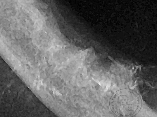 Wie es schon zu vermuten war lässt sich der Zahn nicht komplett extrahieren, selbst eine Teilung in der Mitte mit einem speziellen Zahnbohrer reicht nicht um die tiefsitzende Wurzel unterhalb des porösen Zahnhalses in einem Stück zu entfernen.