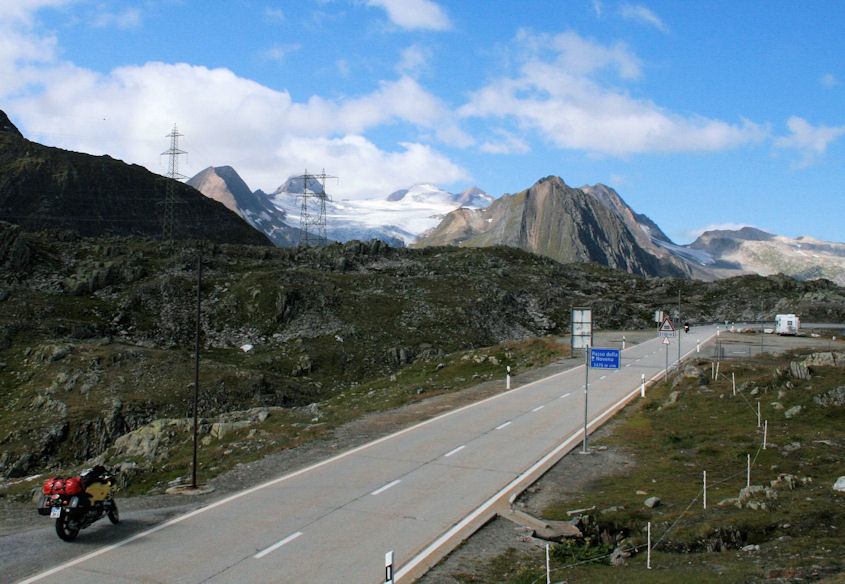 Motorradtour Sommer 2007 Jura - Wallis - Tessin Tag 7: Val Maggia - Locarno - Valle Leyentina - Val Bedretto - Nufenenpass - Grimselpass - Innertkirchen -Brünigpass - Sarner See - Luzern -Wiesbaden Nufenenpass Griesgletscher Nufenen Panoramablick Tourenüberblick Das Jahr 2007